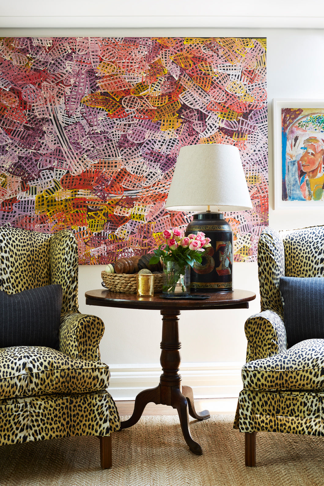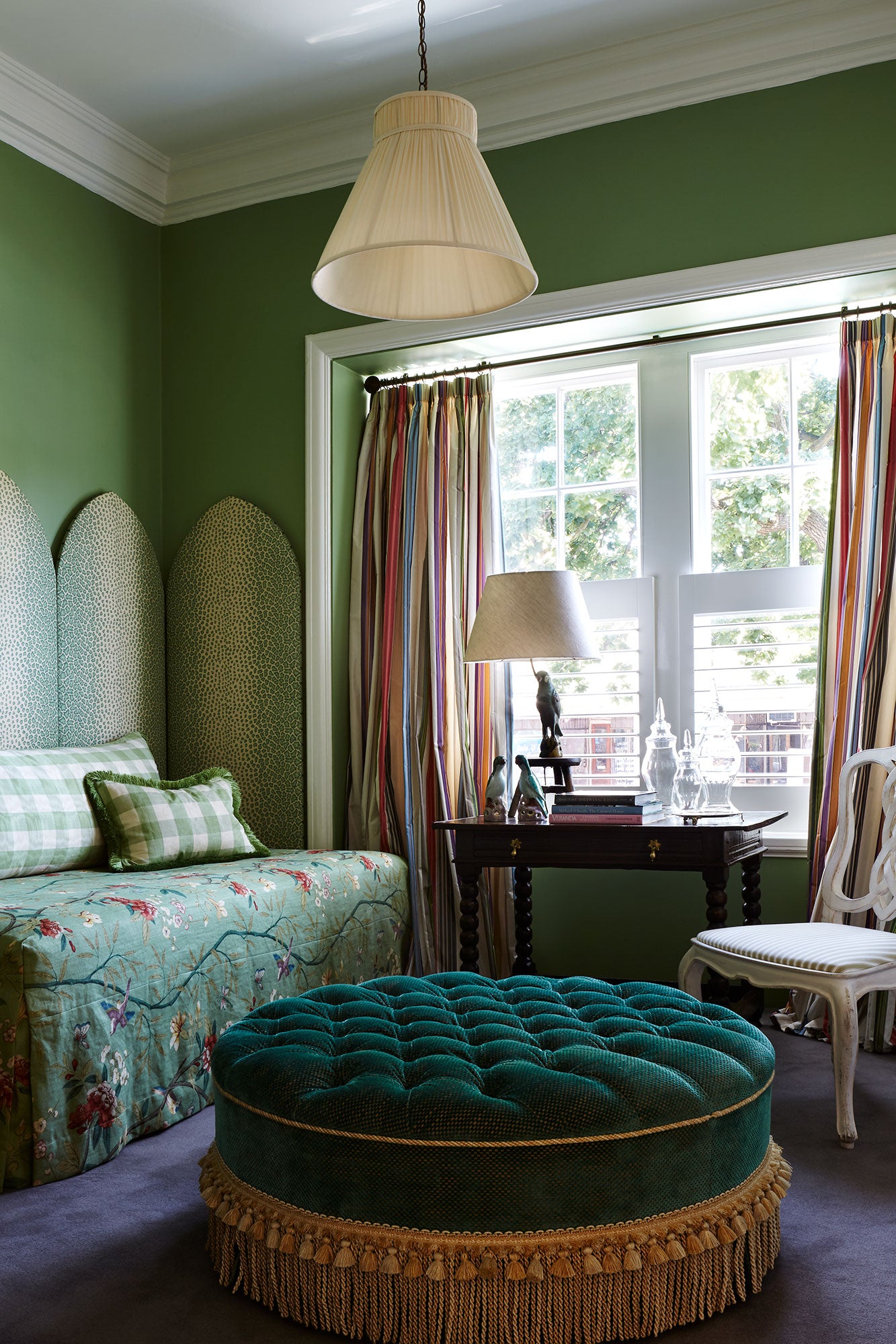 Described By Jenny Rose-Innes, author & international style aficionado; ‘Like entering a jewellery box!’ A humble terrace house has been decorated with huge personality. Our client had only a few requests, lots of green, lots of pattern and space for her vast collection of Antique Furniture & Art. With such an enthusiastic vision for only a wee little house, we decided to imagine the spaces as if they were in fact much larger than they are by using bold colours and dramatic pattern. A sophisticated, green scenic Chinoiserie Wallpaper by Mary Mcdonald immediately creates an unexpected sense of enchantment on entering, each room having its own unique colour scheme, favourite colours of the lady of the house.