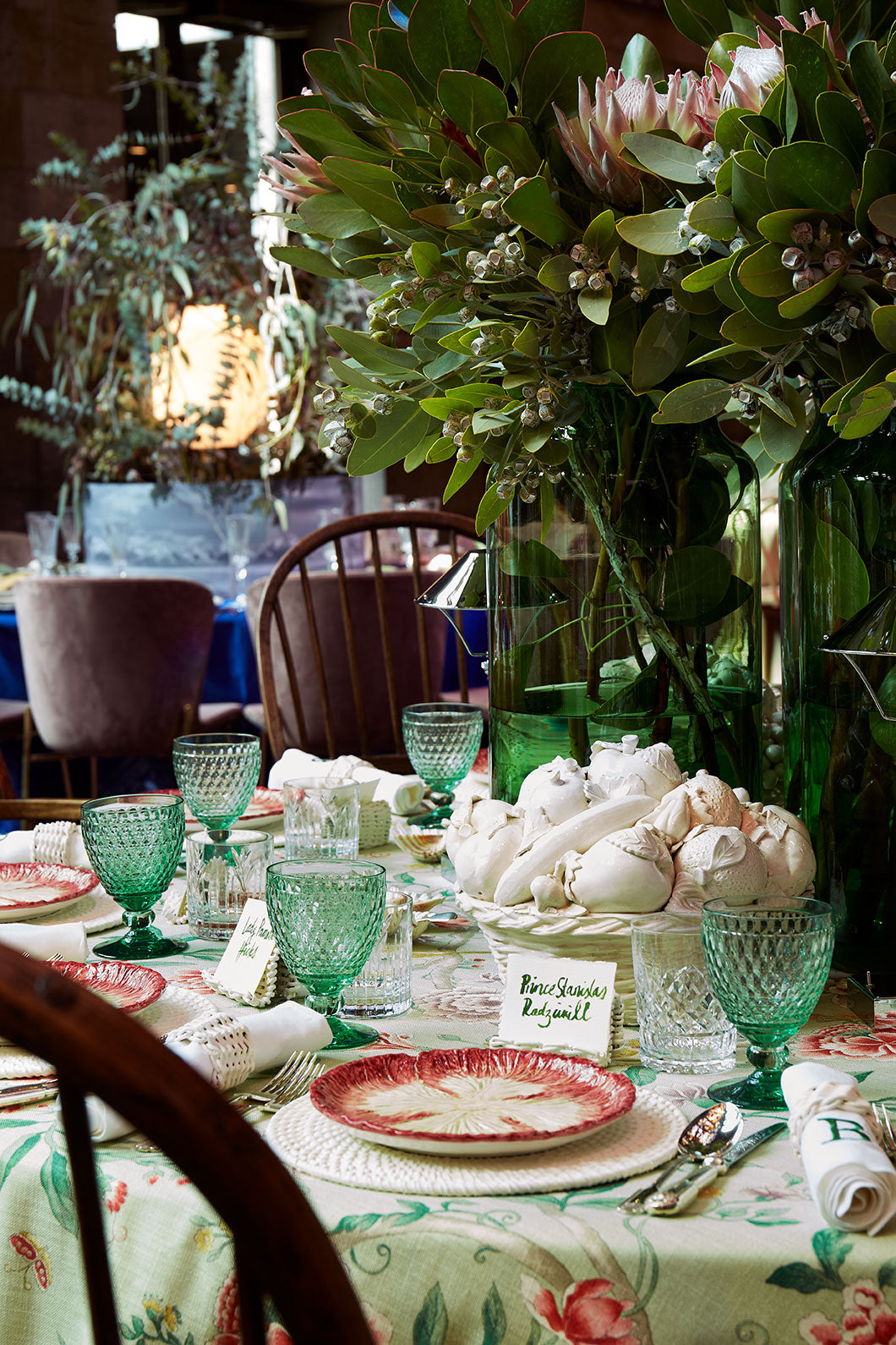 The interiors, decorated by Renzo Mongiardino, pay homage to Lee’s love of flowers & gardens. Guests of Lee & her husband Prince Stanislas Radziwill, included a group of close friends & notable figures of the time, including Lee’s sister, Jacqueline Bouvier Kennedy, Aristotal Onassis, David Hicks, Lady Pamela Hicks, Cecil Beaton, Sir Winston Churchill, Billy Baldwin & Dorothy Draper.