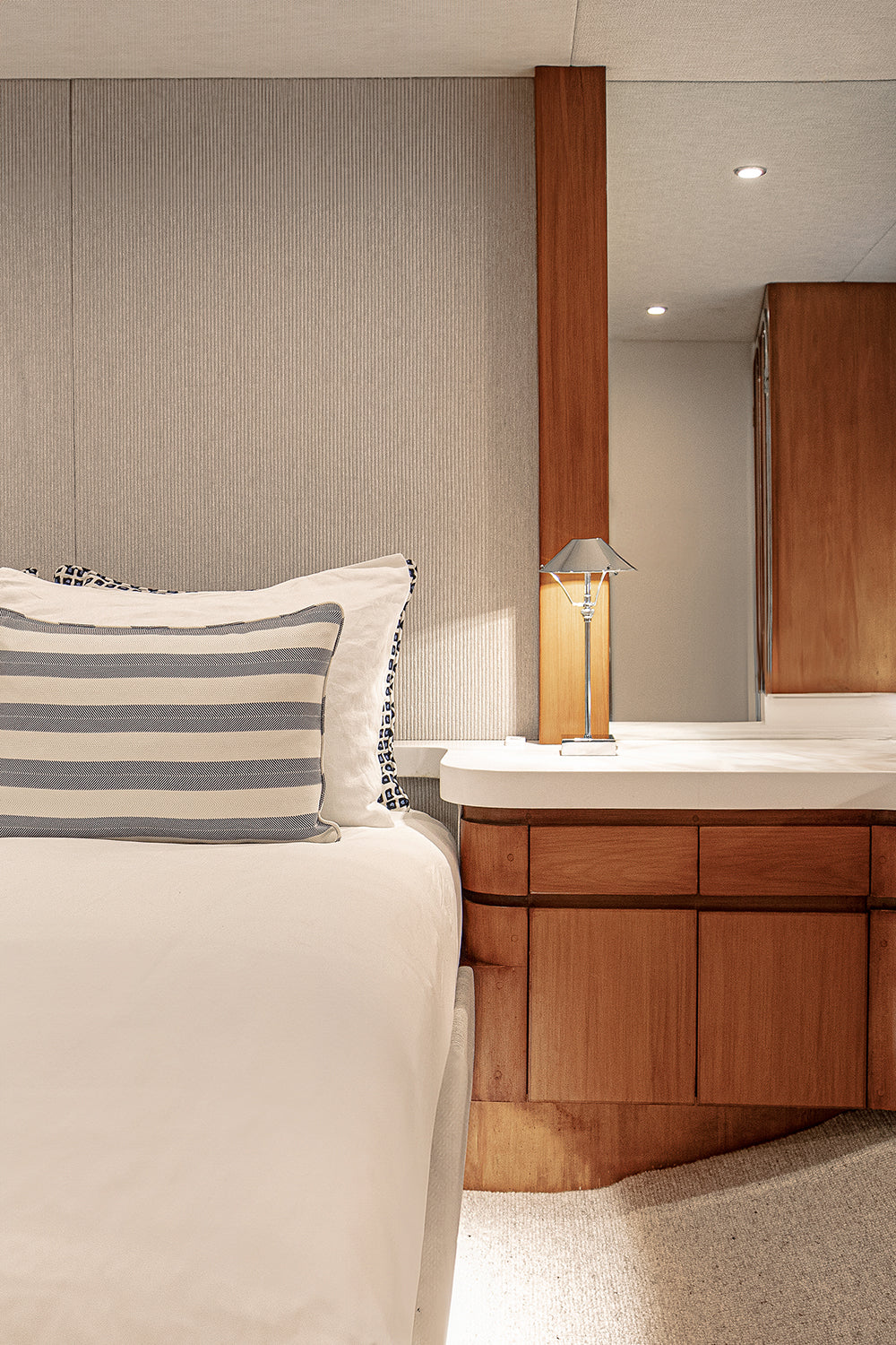 Moored in the beautiful Gold Coast City Marina is the stunning 75ft motor yacht which underwent a full interior refit by Brownlow Interior Design. This was a particularly fun project to work on and a welcome change to our residential oriented projects.